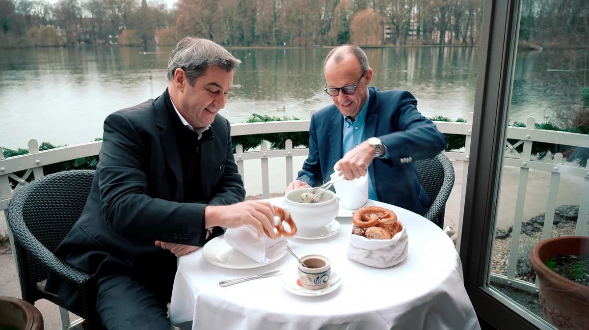 Zwei Jahre lang haben Ben Bolz, Philipp Grüll, Johannes Lenz und Lucas Stratmann für den NDR und den BR Merz und andere CDU-Menschen begleitet. Herausgekommen ist dabei „Die Merz-Strategie – Wohin steuert die CDU?“ und eine klare Erkenntnis: Von Merz möchte sich niemand umarmen lassen.