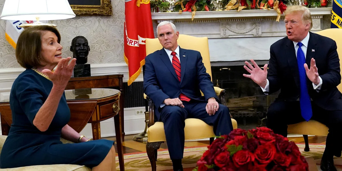 Im Büro des Präsidenten sitzen die Demokratin Nancy Pelosi und ihr Parteikollege Charles „Chuck“ Schumer, um über den Staatshaushalt der US-Bundesregierung zu sprechen. Donald Trump will Geld für die Mauer zu Mexiko, die Demokraten wollen das nicht. Das ist zunächst einmal nichts Neues, da diese Diskussion seit Jahren regelmäßig aufkommt – und dass Trump und Pelosi kein freundschaftlich-kollegiales Verhältnis pflegen, ist bekannt.