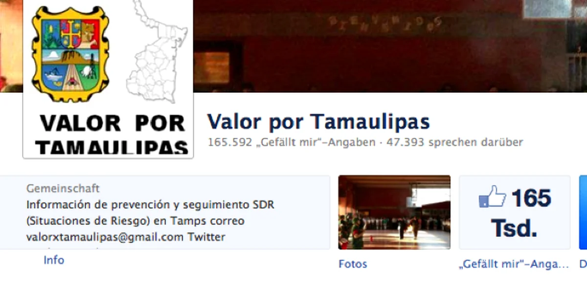 Auf seiner vor einem Jahr eingerichteten Facebook-Seite „//www.facebook.com/ValorPorTamaulipas?fref=ts:Valor por Tamaulipas“ („Mut für Tamaulipas“) und über sein Twitterkonto //twitter.com/ValorTamaulipas: @ValorTamaulipas ist der Blogger, der weder sein Alter noch sein Geschlecht preisgibt, mächtigen Gruppen ins Gehege gekommen, die ihn zum schweigen bringen wollen.