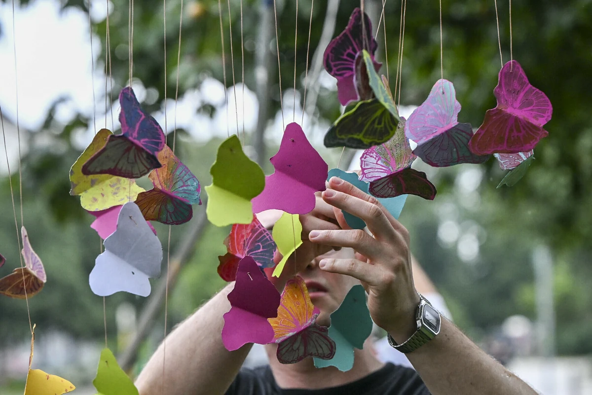 Zwischen den Bäumen auf dem Oranienplatz in Kreuzberg flattern 294 bunte Papierschmetterlinge im Wind – einer für jedes Opfer. Rund 100 Menschen haben sich am Montagnachmittag bei strömendem Regen versammelt, um am internationalen Gedenktag für verstorbene Drogennutzer*innen zu gedenken. Zu der Veranstaltung unter dem Motto „Überdosierung und Drogentod können alle Menschen (be)treffen“ hatte ein Aktionsbündnis aus Vereinen der Drogensuchthilfe aufgerufen.