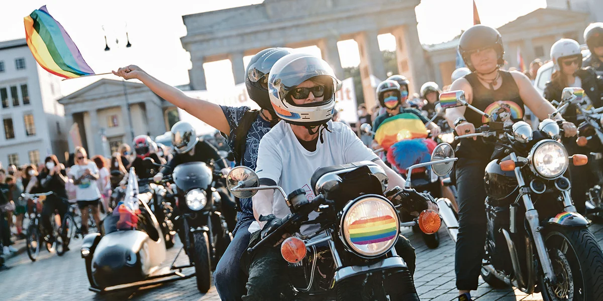 Es wird laut, bunt und wahrscheinlich ein bisschen nach Benzin riechen, wenn die Dykes on Bikes am Freitag mit schweren Stiefeln, schwarzen Lederhosen und Regenbogenfahnen am Motorradlenker durch Berlin düsen. Dyke stammt aus dem amerikanischen Englisch und war ehemals eine abwertende Bezeichnung für Frauen, die sich vermeintlich zu maskulin verhielten. Die lesbische Community eignete sich den Begriff an. Die Dykes on Bikes demonstrieren für lesbische Sichtbarkeit. Sie sind ein Teil der rund 9.000 Lesben und Unterstützer:innen, die am Vorabend des CSDs zum Dyke* March erwartet werden.