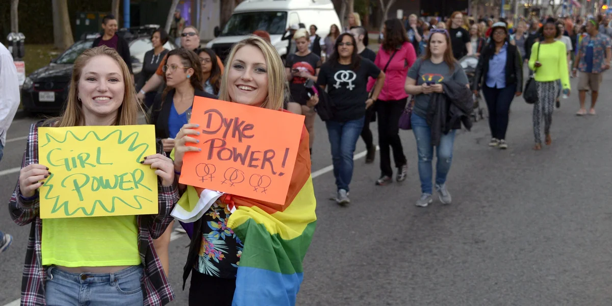 Die Großdemo der Dykes stammt ursprünglich aus den USA, wo 1993 im Rahmen des ersten „March on Washington for Lesbian, Gay and Bi Equal Rights and Liberation“, einer nationalen Großdemonstration für Emanzipation und LGBTI-Rechte, auch der erste Dyke March mit über 20.000 Teilnehmerinnen in Washington D.C. stattfand.