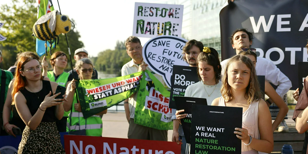 Es war das Vorspiel für den großen Showdown. Einen Tag vor der entscheidenden Abstimmung über das europäische Renaturierungsgesetz am Mittwoch lieferten sich die Klimaaktivistin Greta Thunberg und deutsche Bauern ein Wortgefecht vor den Mauern des Straßburger Europarlaments. „Unsere Botschaft an die Politiker lautet, sich für die Natur und die Menschen statt für Profit und Gier zu entscheiden“, rief die Schwedin. „Wer hat denn bisher die Natur erhalten?“ fragten die Landwirte, die mit Traktoren den Zugang blockierten. „Wir Bauern“. Allein an diesem Julitag war deren Protest lauter als der Appell der Umweltschützer.