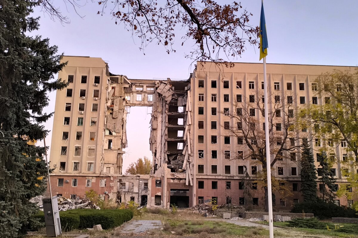 Vom mittleren Trakt des regionalen Verwaltungsgebäudes sind nach einem Raketenangriff nur noch Ruinen übrig. Ein Gedenkort zu deren Füßen erinnert an die vielen im Krieg ums Leben gekommenen Zivilisten und Soldaten aus Mykolajiw. Es fließt zwar wieder Wasser aus den Hähnen, aber die Wunden klaffen tief. Kremin, bis vor kurzem noch „Ombudsman für den Schutz der Amtssprache“ ukrainisch, möchte uns Besucher*innen davon überzeugen, dass seine Stadt trotz der fortwährenden russischen Aggression lebt und gedeiht. Er spricht hier, im ukrainischen Süden, wo auf den Straßen auch heute noch überwiegend Russisch zu hören ist, aus Überzeugung ukrainisch.