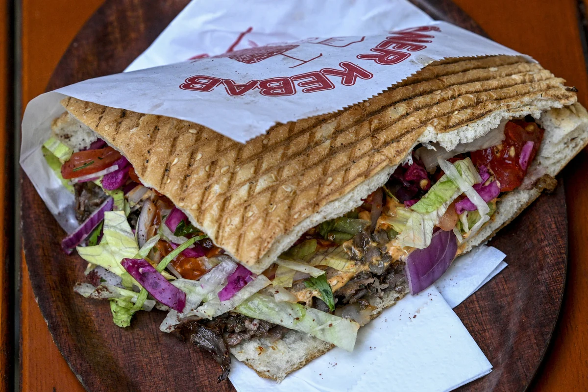 Die Kundschaft ist eine Mischung aus Berlinbesuchenden und Einheimischen mit und ohne Migrationsbezug. Irgendwann schlurft ein älterer Mann zu uns. Die Kleidung wirkt gepflegt, der weiße Bart gestutzt, sein Blick skeptisch. Nebenan hätte es auch ’ne Currywurst gegeben, aber nun gut. Vermutlich ein Tourist aus einem der umliegenden Hotels. Sein Promillestatus ist offensichtlich: mehr als nur angeheitert, jedoch längst ohne jede Heiterkeit. Er bestellt und bleibt an einem der Tische stehen. Nennen wir den betagten Herrn Almanya.