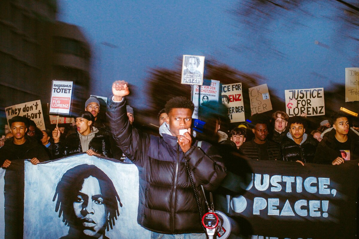 Als kurz darauf eine zweite Demonstrierende „Fass mich nicht an!“ ruft, eskaliert die Situation. Die Initiative „Gerechtigkeit für Lorenz“ schreibt später, H. und B. hätten Teilnehmende „körperlich und sexuell bedrängt, unter anderem von hinten angegriffen“. Es folgen gegenseitige Beleidigungen. Mehr ist auf den verwackelten Bildern nicht zu erkennen.