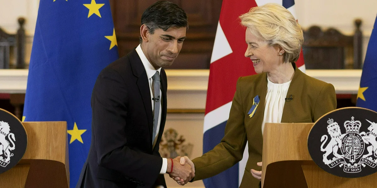 Mit den Worten „The Deal Is Done“ ist am Montag ein ewiges politisches Gezerre zwischen Brüssel und London zu Ende gegangen. Es ging um Abänderungen des Nordirlandprotokolls im Brexit-Abkommen zwischen dem Vereinigten Königreich und der EU. Der neue Deal wurde am Montag von EU-Kommissionspräsidentin Ursula von der Leyen und Premierminister Rishi Sunak besiegelt.