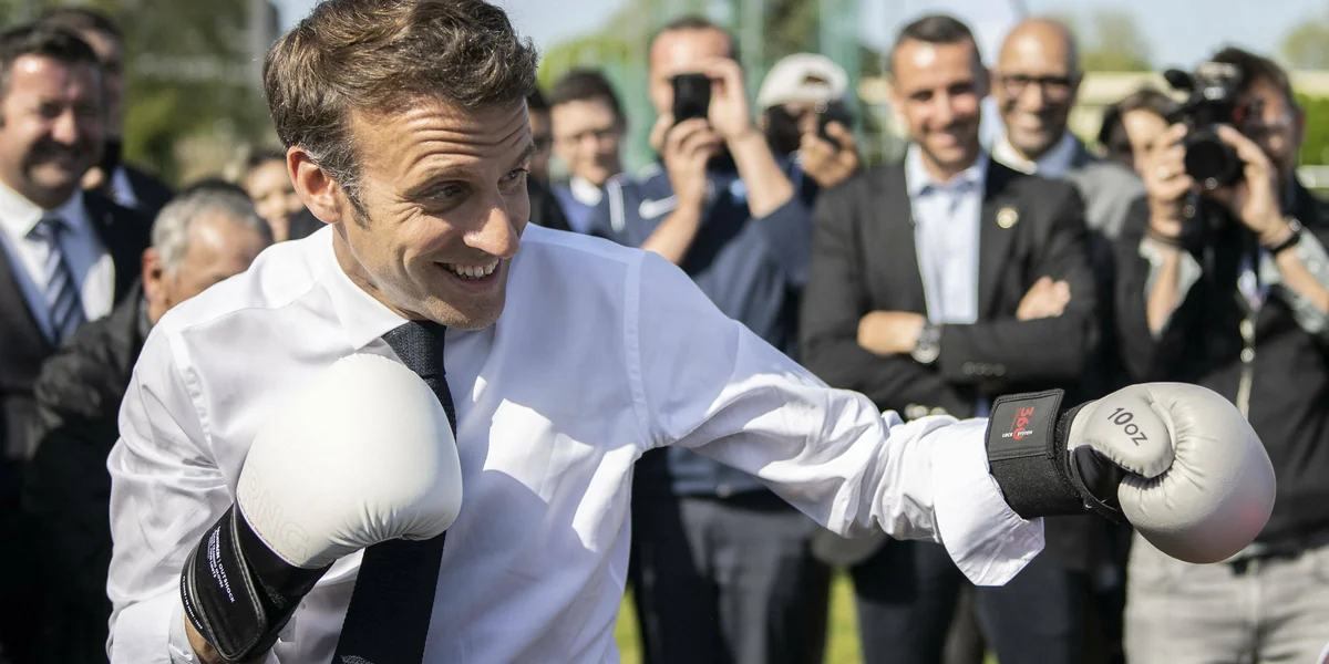 Das anschließende Zusammentreffen mit Bundeskanzler Olaf Scholz im Schloss Meseberg in Brandenburg markierte den Höhepunkt eines glanzvollen Auftritts: Augenzwinkern und Daumen hoch beim obligatorischen Handshake mit dem Kollegen, wobei der Kollege wirkte wie ein Fan, der auf seinen Lieblingsfußballspieler getroffen ist und ihn erfolgreich um ein Foto gebeten hat. Beim Tee oder Kaffee am malerischen Gartentisch schaute dieser Fan sein großes Idol dann ganz verliebt an, während der wieder wohldosiert breitbeinig in die Kameras grinste. Macron trug sein dunkelblaues Sakko offen, Scholz sein schwarzes zugeknöpft, sodass es bei der gemeinsamen Pressekonferenz unschön spannte.
