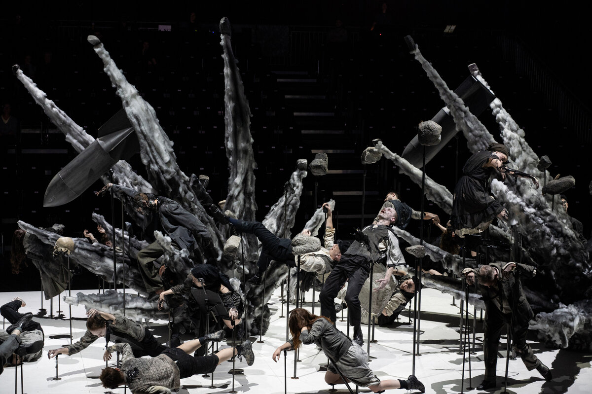 Formal experimentell ist auch die letzte Ruhrtriennalen-Uraufführung „Guernica, Guernica“. Das Kollektiv FC Bergman aus Antwerpen beschäftigt sich mit der Darstellbarkeit von Gewalt. Guernica bezieht sich auf jenen Luftangriff der deutschen Nazis 1937 auf die baskische Stadt, bei der Hunderte von Zivilisten umkamen – Blaupause für viele folgende Kriegsverbrechen.