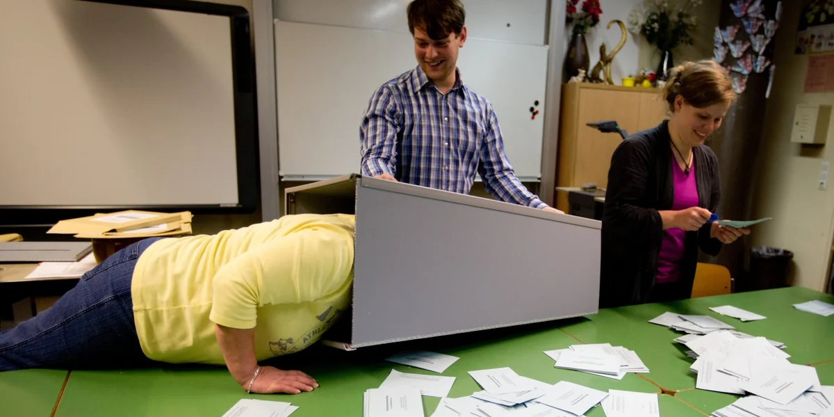 Dann wird die Musik wieder ausgemacht. Das Spielchen kennen die 300 schon, die in einem Club in Prenzlauer Berg seit drei Stunden auf das Ergebnis des Volksentscheids warten. Kampagnenleiter Michael Efler steht auf der Bühne, fummelt wieder am Smartphone herum und sagt: "Der Landeswahlleiter war auch schon mal pünktlicher." Derweil stehen die Kampagnenhelfer seit über einer halben Stunde mit einem Transparent vor der Bühne, für die Fotografen und Kameraleute, die den entscheidenden Moment einfangen wollen. Als dann der orangefarbene Balken auf der Homepage der Landeswahlleiterin knapp unter dem entscheidenden roten Strich hängen bleibt, kriegts keiner richtig mit, weil die Kameras den Blick versperren.