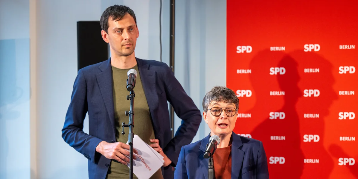 Vielen Linken in der Berliner SPD grauste vor der Vorstellung. Nun ist es so gekommen. Neuköllns Bezirksbürgermeister Martin Hikel und Ex-Sportstaatssekretärin Nicola Böcker-Giannini sollen an der Spitze der rund 18.000 Sozialdemokrat:innen in der Hauptstadt stehen. In der zweiten Runde der SPD-Mitgliederbefragung zum künftigen Parteivorsitz stimmten 58,5 Prozent der Teilnehmenden für das Duo.
