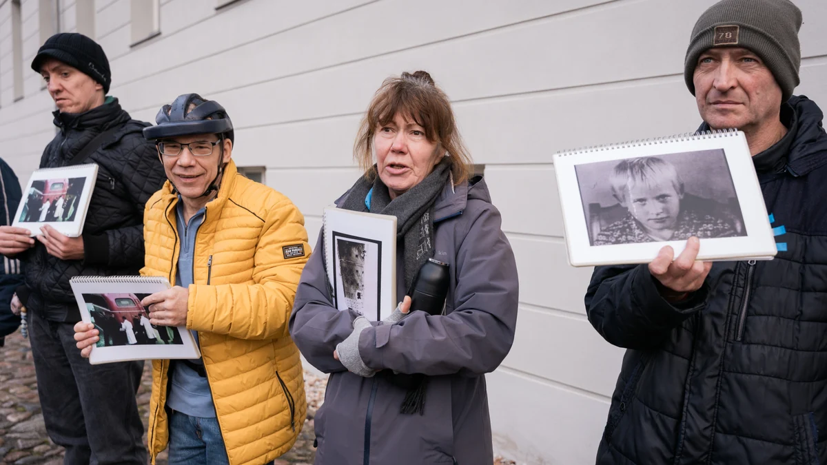 Am Ende können alle Teilnehmenden einen Stein auf Fotos von Stationen der Führung legen. Die meisten landen auf dem Foto des Richters Lothar Kreyssig (1898–1986) aus Brandenburg an der Havel, der sich mit einer Strafanzeige gegen das Töten gestellt hat. Kreyssig wurde zwangsbeurlaubt und im März 1942 in den Ruhestand versetzt. Michel, einer der Teilnehmenden, erklärt, warum sein Stein auf dem Foto von Kreyssig liegt: „Das war mutig, was er getan hat.“