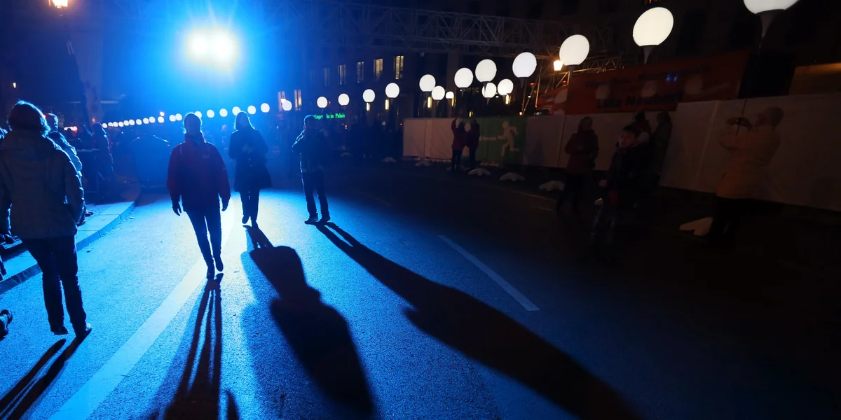 Die Lichtgrenze soll die „Dimension der Mauer ins Gedächtnis rufen“, so sagt es der Flyer. Ich bin mir sicher, dass ihr das gelingt: Bei den Menschen, die damals dabei gewesen sind. Ich dagegen bekomme nur Angst vor der Zukunft.