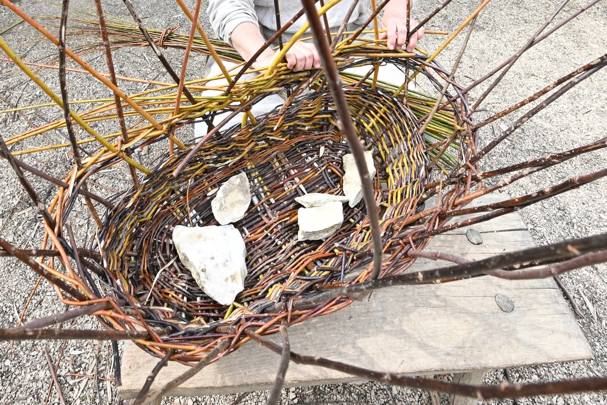 Ob es nun Weisheit ist, Erschöpfung oder Bocklosigkeit kann ich nicht sagen, doch wenn ich mich nicht gerade um unsere Kinder kümmere, lasse ich immer öfter alles andere liegen (auch das Drängende) und flechte Körbe. Aus Ästen, Gräsern, Rinde, Wolle oder alten Socken – ich kann aus fast allem einen Korb machen.