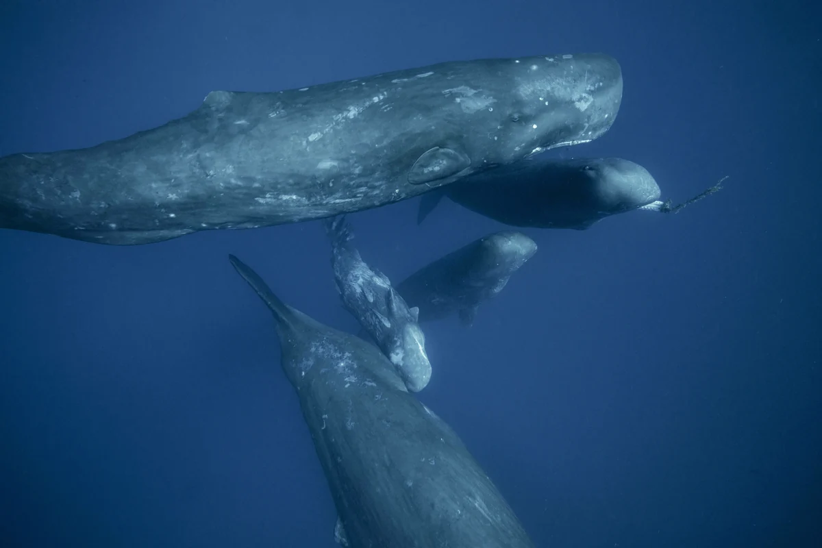 Forscher*innen ist es per Zufall gelungen, Aufnahmen einer Pottwalgeburt zu machen. Dabei unterstützten fremde Weibchen die Mutter als Hebammen.