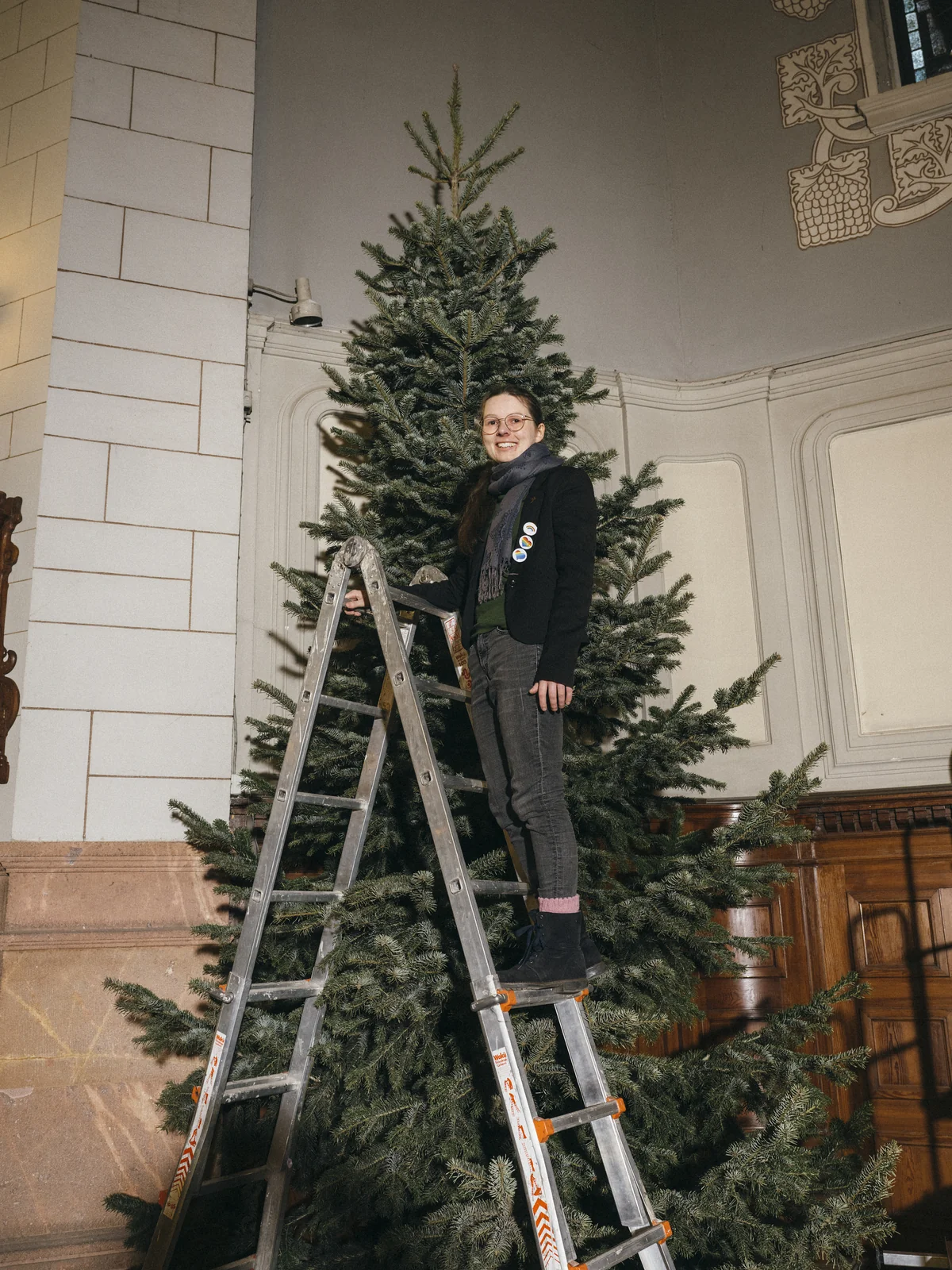 Auch die wilhelminische Bauweise passt zum Bild einer zeitgemäßen evangelischen Kirche. Eigentlich wurde sie 1894 eingeweiht, um die Berliner Untertanen des Preußenkönigs wieder auf den Herrn Christus auszurichten. Deren Köpfe hatten die Sozialdemokraten mit ihrem Messias, dem Drechslergesellen August Bebel, gehörig vernebelt. Doch heute surrt hier im Keller ein Blockheizkraftwerk, das, mit Biogas gespeist, das 2021 verabschiedete Klimaschutzgesetz der Landeskirche erfüllt. Im Winter lädt die Kirche Bedürftige ein, sich zu wärmen. Dazu zwei Theologinnen im Pfarrdienst – und die dritte ist derzeit Zellmer. Heiligabend, so viel ist sicher, wird es zur Christvesper brechend voll. Franziska Zellmer gestaltet dann den Gottesdienst mit.