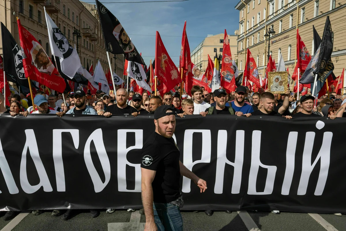 Die russische extreme Rechte versucht aus dem Mord an der Schule Kapital zu schlagen. Allen voran die „Russische Gemeinschaft“, die derzeit wohl größte rechtsextremistische Gruppierung in Russland. Mit landesweiten Anlaufstellen tritt die Bewegung als streng orthodoxe alternative Ordnungsmacht gegen Migrant:innen auf.