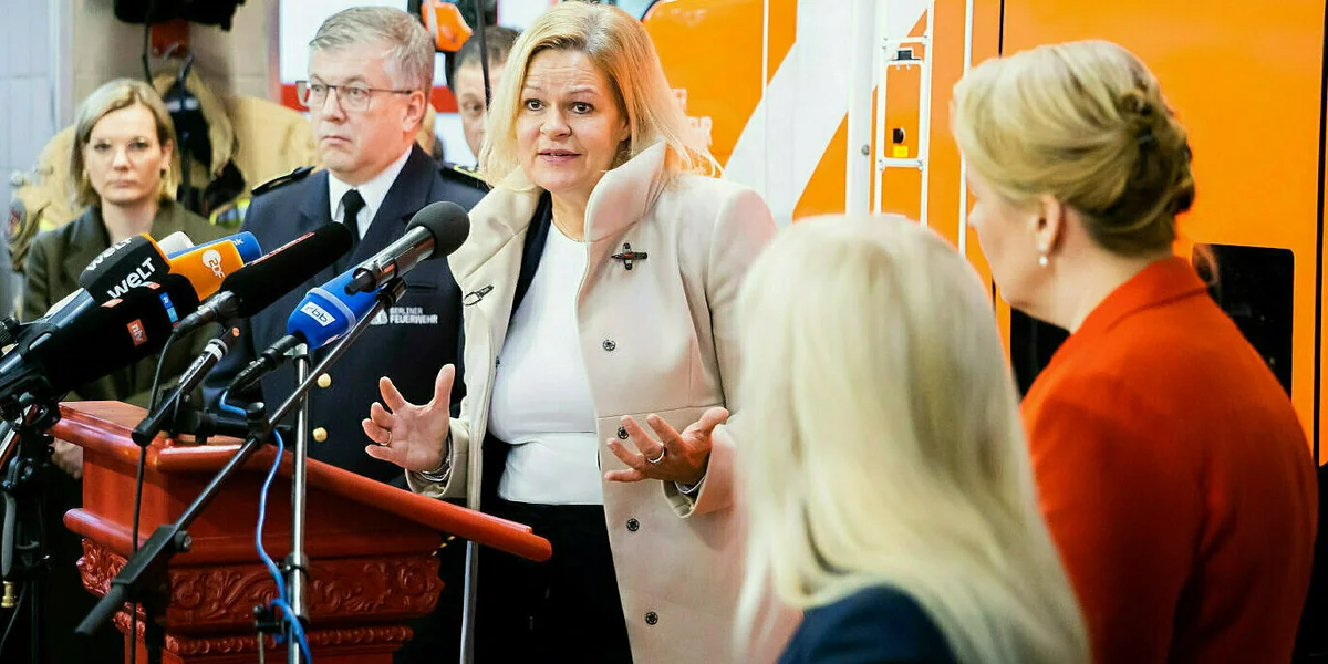 Es sei ihr ums Zuhören gegangen, sagt Nancy Faeser. Aber natürlich geht es am Freitagmorgen in der Neuköllner Feuerwache auch um Bilder. Kurzfristig hat die Bundesinnenministerin den Termin anberaumt und die Presse eingeladen, wenige Tage nach der Silvester-Randalenacht, die auch und vor allem in Neukölln tobte. Berlins Bürgermeisterin Franziska Giffey steht nun ebenso in der Feuerwache, dazu Innensenatorin Iris Spranger und Neuköllns Bürgermeister Martin Hikel. Alle vier sind sich einig: Es habe eine neue Dimension der Gewalt stattgefunden, die Folgen haben müsse.