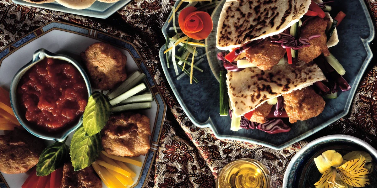 Mit der Techina hält er es umgekehrt: Erst die ganzen Kichererbsen und obenauf Sesamsamensoße und Petersilie. Oft gibt es in den einfachen Lokalen, wie bei Abu Shukri, noch Oliven dazu und eine Zwiebel. Wer mehr Auswahl will, geht in schickere Restaurants, wo die Falafelbällchen nur den kleinen Teil der Mezza bilden, der traditionellen Vorspeise im Vorderen Orient.