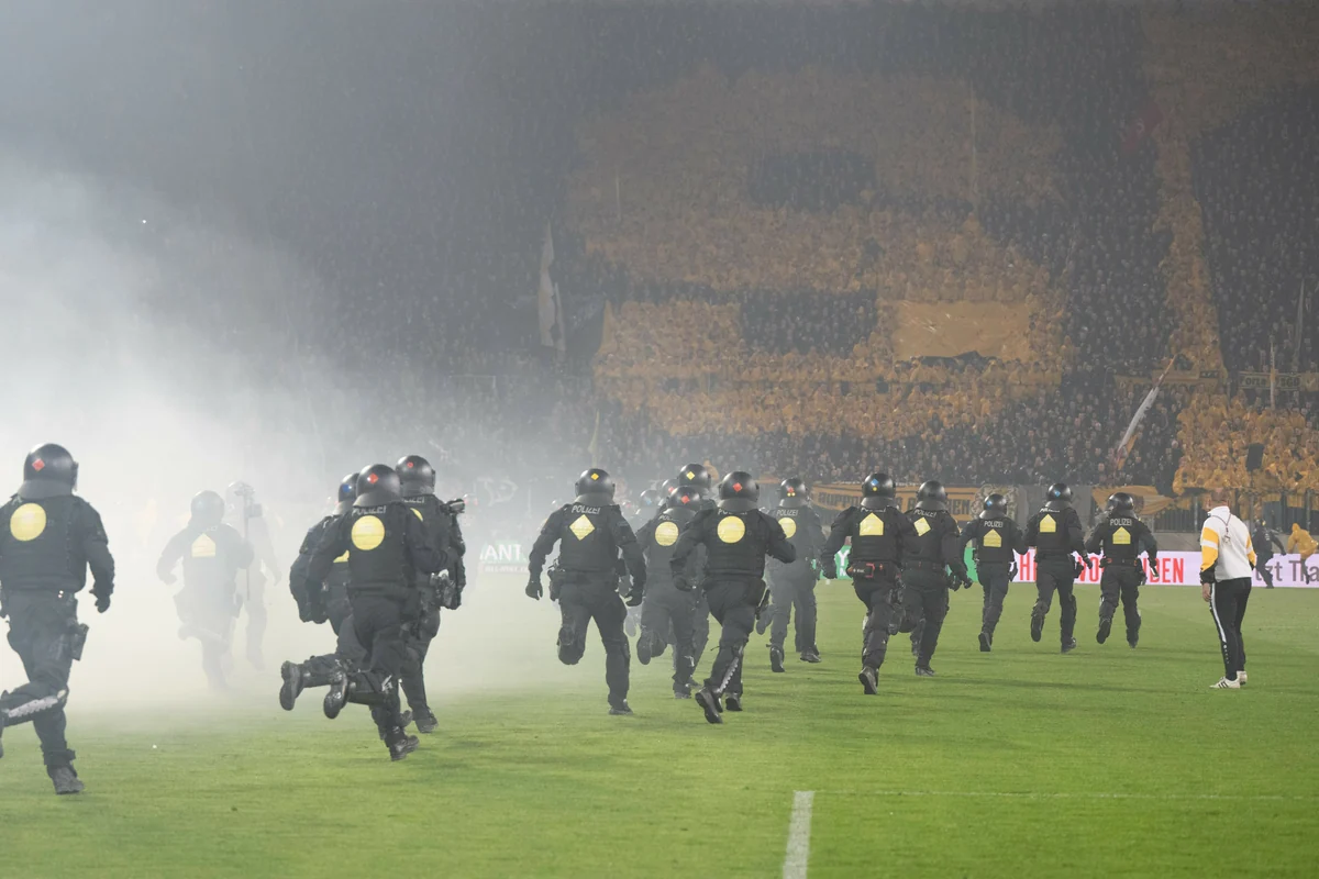 E s waren außergewöhnliche Szenen, die sich am vergangenen Samstag im Dresdner Rudolf-Harbig-Stadion beim Zweitligaspiel zwischen Dynamo Dresden und Hertha BSC abspielten: Anhänger beider Vereine standen sich im Stadion-Innenraum vor dem Gästeblock unmittelbar gegenüber und beschossen sich mit Feuerwerk. Erst das Eingreifen der Polizei beendete diese direkte Konfrontation.
