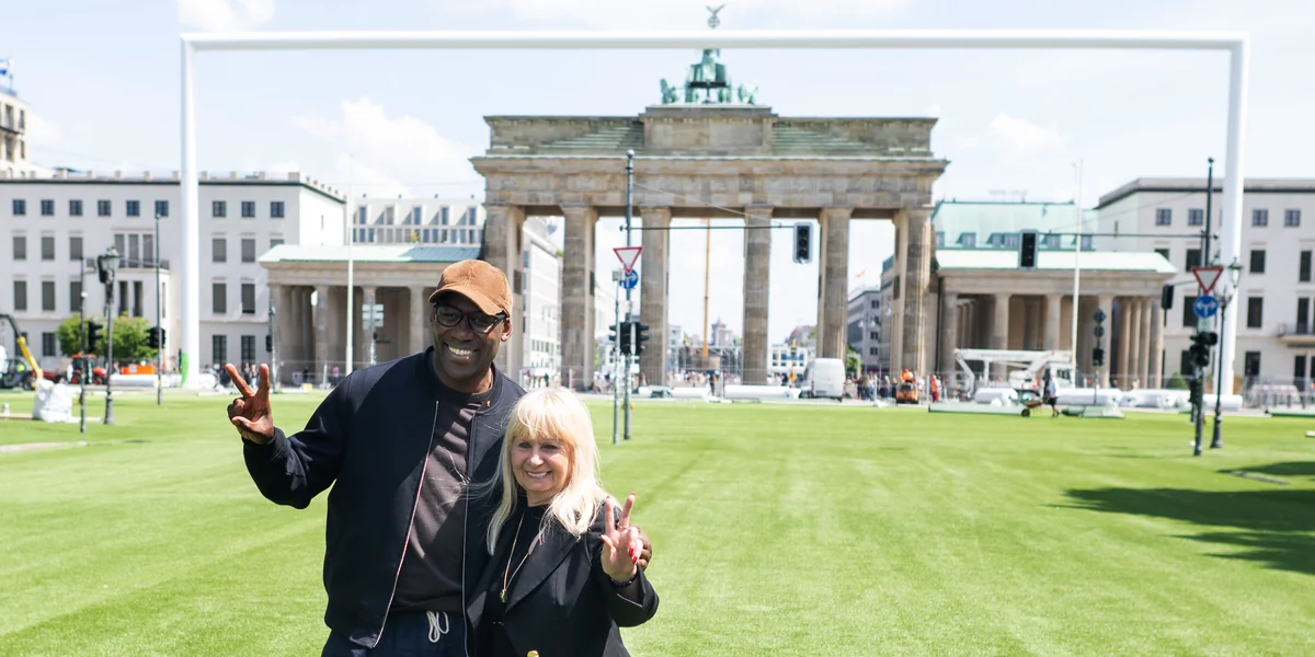 „Es ist Wahnsinn, es hat sich gelohnt.“ Senatorin Spranger ist schier hin und weg – auch über das Metallgerüst, das hinter ihr ein 64 mal 26 Meter großes Fußballtor darstellen und das Brandenburger Tor einrahmen soll. Das aber zugleich an eine Gasüberleitung erinnert, die man nicht im Boden hat unterbringen können. Was viel damit zu tun hat, dass in dem Tor kein Netz hängt – und auch künftig nicht hängen soll.