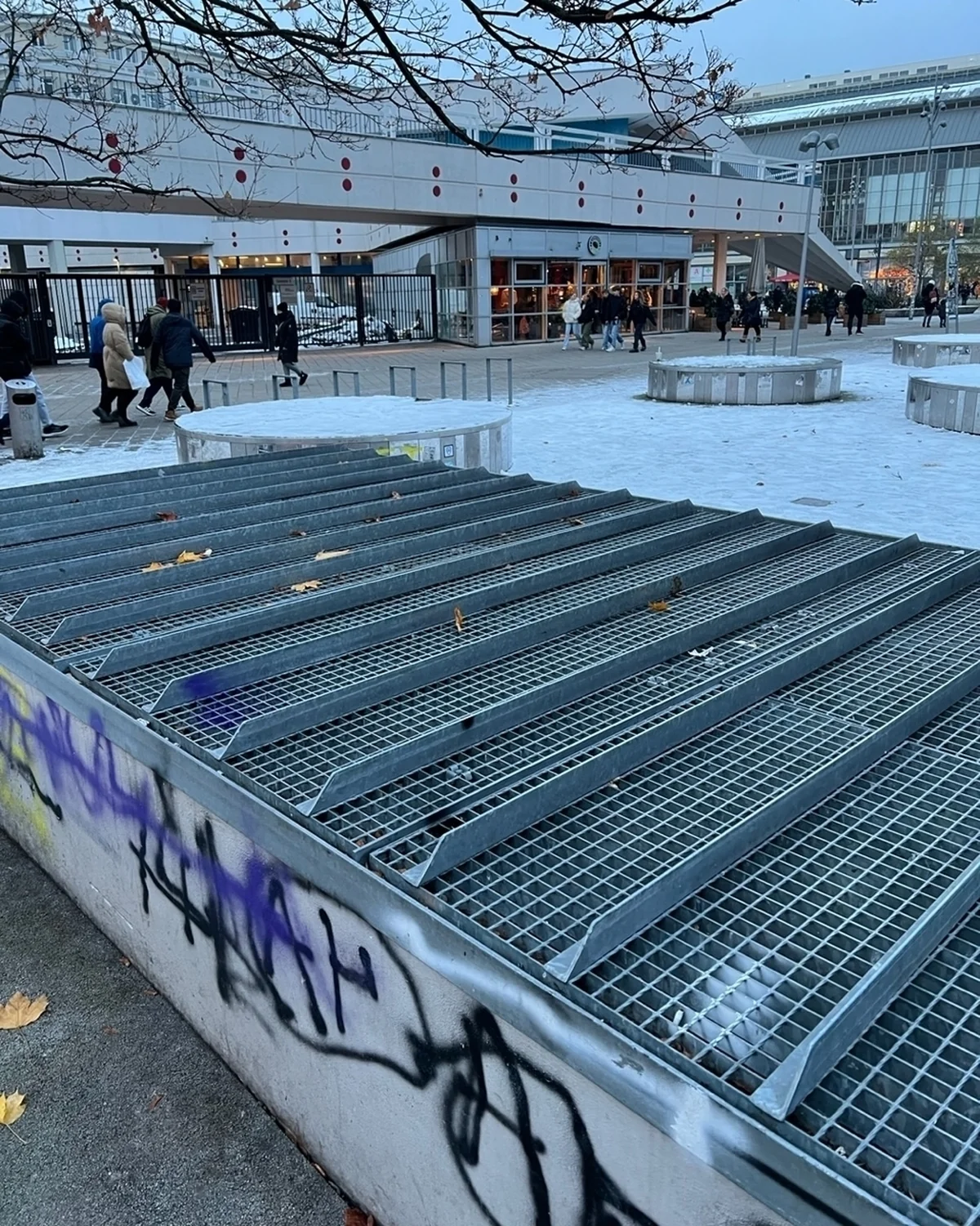 Keine Bänke, aber Betonblöcke mit Metallspitzen