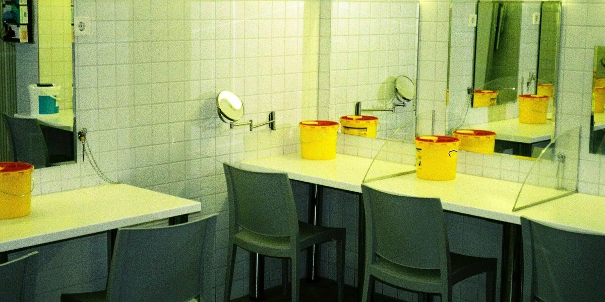 Hinter der Theke am Eingang des Fixpunktes hängt ein großes Plakat der Deutschen Aidshilfe, das darüber informiert, dass man sein Heroin auf das gefährliche Opioid Fentanyl testen lassen könne. Bevor sie konsumieren, werden die Besucher_innen dann darüber aufgeklärt, was die Risiken sind und dass die Dosis gegebenenfalls verringert werden sollte. „Eine Person, die Fentanyl im Heroin hatte, sagte, dass ihr dieser Rausch überhaupt nicht gefalle“, erklärt Bergmaier. Da es bald zu einem Heroinmangel in Europa kommen soll, wollen sich Einrichtungen wie der Fixpunkt vorbereiten.