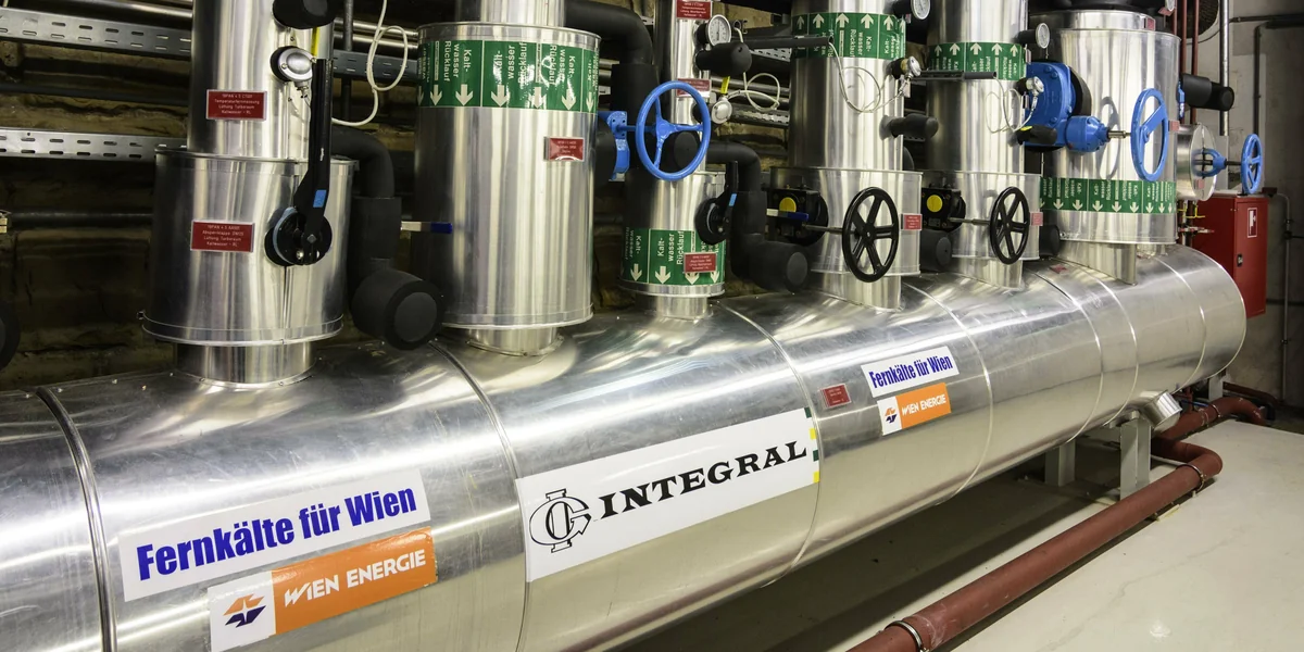 Fernkälte funktioniert nach dem gleichen Prinzip wie Fernwärme: Wasser wird über unterirdische Leitungen zu den einzelnen Grundstücken transportiert. Aber statt heißem Wasser zum Aufwärmen ist es kaltes Wasser zur Kühlung. In den angeschlossenen Gebäuden überführen Wärmetauscher die Kälte des Wassers in das geschlossene Kühlsystem des Gebäudes. Produziert man Kälte im großen Maßstab zentral anstatt in vielen kleinen Anlagen, ist das energieeffizienter und damit sowohl ökologisch als auch ökonomisch vorteilhafter – so wie auch bei der zentralen Wärmeproduktion.