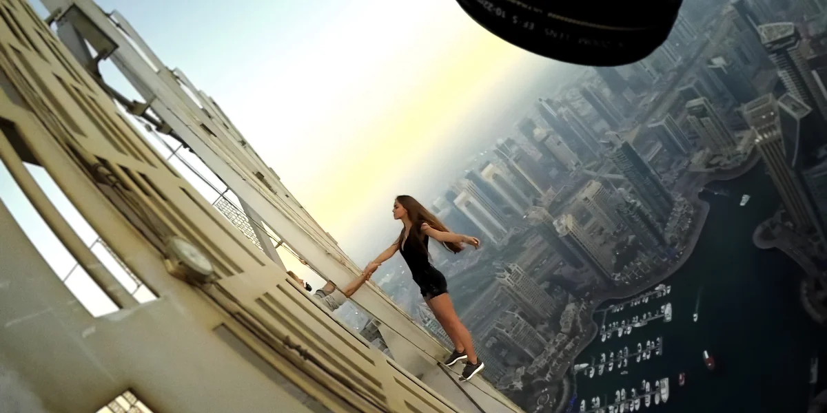 Gegen Ende bekommt die Zuschauer*in salvenartig „found footage“ aus dem Netz um die Ohren gehauen: grinsende Katzen, ein Paar, das ohne Sicherung auf einem Wolkenkratzer balanciert. Die Montage ist überfordernd – der Verstand kommt nicht nach, die Eindrücke zu verarbeiten, Affekt folgt Affekt.