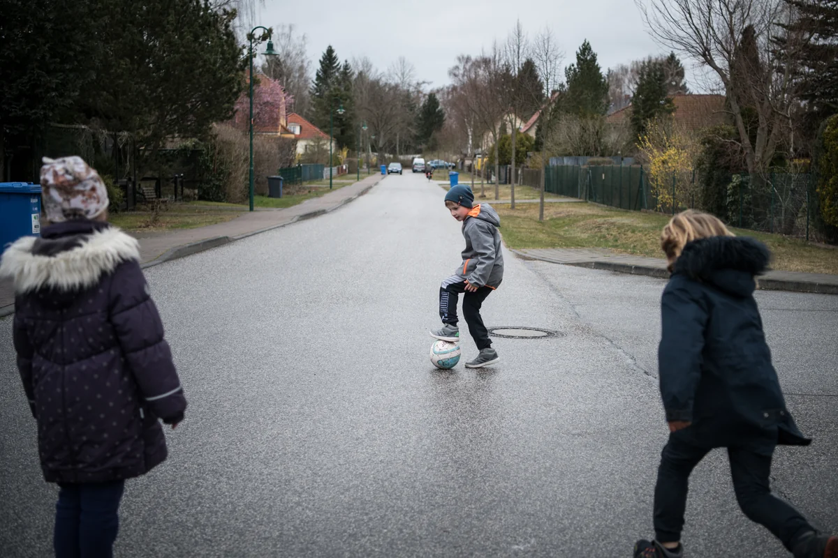Es ist der 31. März, Zhenya hat ihre Grippe einigermaßen überwunden, endlich kommen wir dazu, in Ruhe zu reden. Yeghor spielt auf der Straße vor unserem Haus mit anderen Gleichaltrigen Fußball: Da rauft sich gerade eine ukrainisch-deutsche Bande zusammen, die keine Worte braucht, um zu kommunizieren.