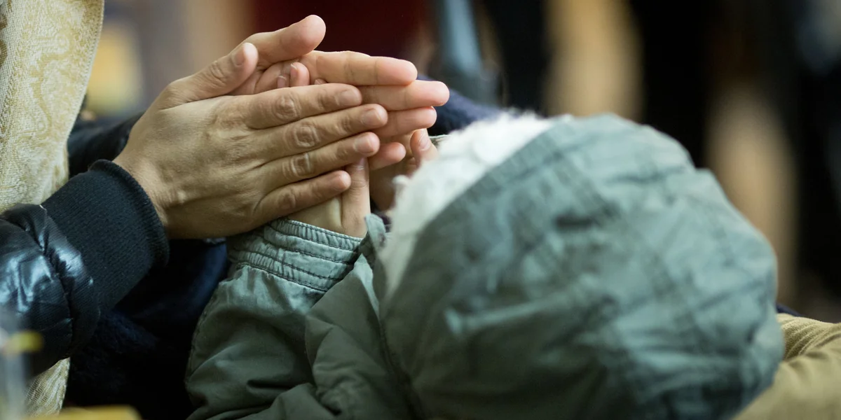 Rund 50 Menschen sitzen hier am Montagmorgen. Drinnen drängen sich Eltern mit ihren Kindern, um das Ende eines gelben Schlauches, durch den das Zelt beheizt wird. Ein leichter, warmer Luftstrom ist zu spüren, mehr nicht. Der Rest des Zeltes bleibt bei den aktuellen Minusgraden kalt.