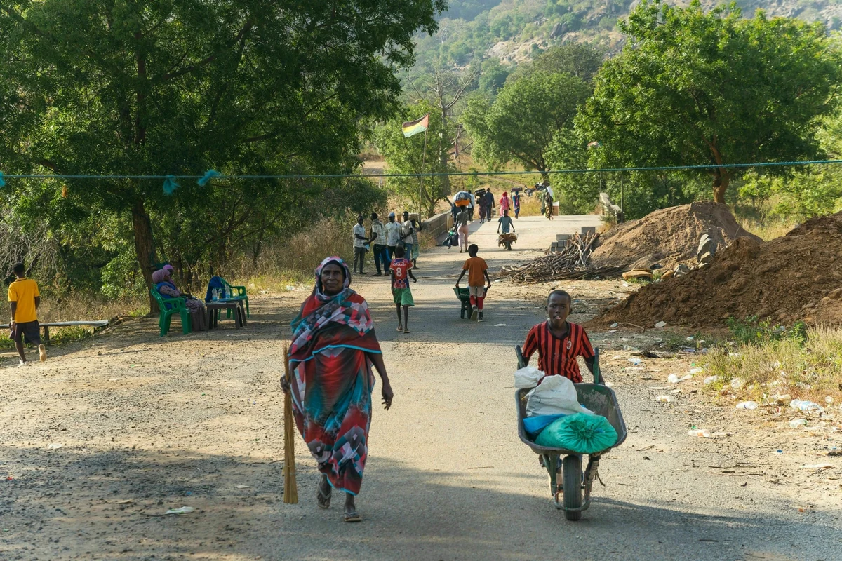 Krieg kann banal aussehen. Eine etwa 15 Meter lange, schmucklose Brücke führt über die Grenze. Menschen schieben Schubkarren mit Lebensmitteln in Richtung Sudan, denn die Einkaufspreise auf äthiopischer Seite sind geringer. Im Schatten eines Baumes sitzt ein Soldat regungslos auf einem Stuhl und starrt zur Brücke, das Gewehr im Schoß.