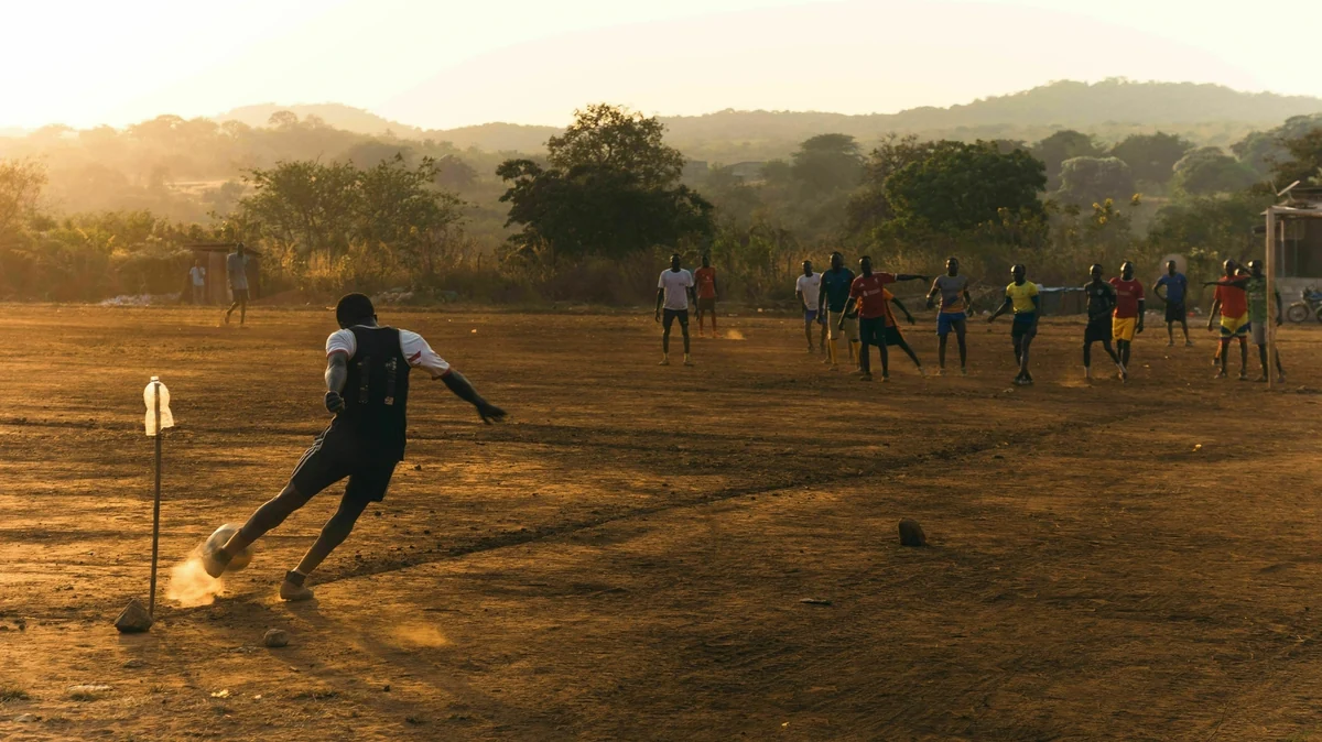 In seinem jetzigen Leben ist sein alter Spielerausweis des Khartumer Fußballervereins Al-Shabia Bahri wohl sein wichtigstes Besitztum. „Sie haben mich bezahlt“, sagt Simon. Er wählt wenige Adjektive in seinen ohnehin knappen Worten. Als er im kalten, schwachen Licht der einen Glühbirne seiner Unterkunft auf den Ausweis schaut, verrät sein Lächeln die Bedeutung des chipkartengroßen Dokuments. Im Flüchtlingslager spielt er im zentralen Mittelfeld des ersten Teams. Morgen treffen sie auf die Elf des Dorfes – 90 Minuten Normalität.