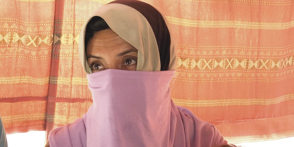 Die Familie kommt aus einem Dorf in der Nähe von Mossul. Iman, mit braun-beigem Kopftuch, ihr Gesicht mit einem rosa Tuch bedeckt, erzählt ihre Geschichte. Adel, ihr Mann, habe ursprünglich bei der Elektrizitätsgesellschaft gearbeitet. Nachdem der IS in ihr Dorf kam, habe er vom irakischen Staat keinen Lohn mehr bekommen. Um nicht zu verhungern, habe er beim IS als Koch angeheuert und dort gearbeitet, bis er bei einem Bombardement ums Leben kam.