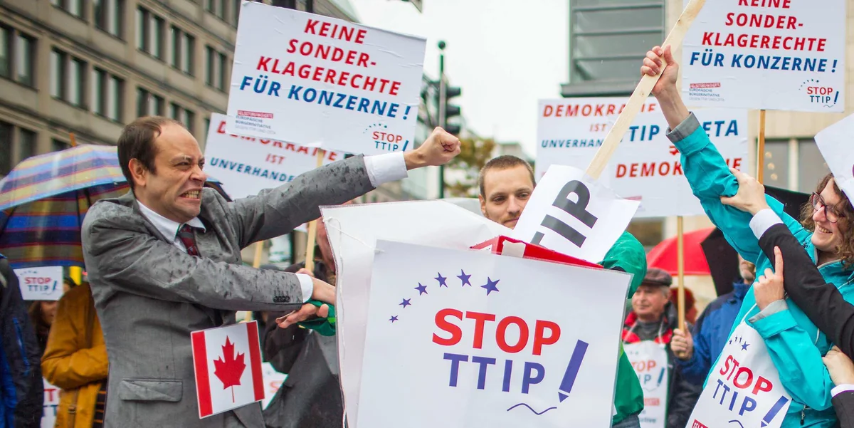 Die Proteste haben etwas bewirkt: Die EU-Kommission will die privaten Schiedsgerichte im geplanten Freihandelsabkommen TTIP und allen Folgeabkommen abschaffen. An ihre Stelle soll ein neuer, öffentlicher und transparenter Handelsgerichtshof treten, sagte EU-Handelskommissarin Cecilia Malmström. Kritikern geht der Vorschlag, der noch nicht mit den USA abgesprochen wurde, nicht weit genug.