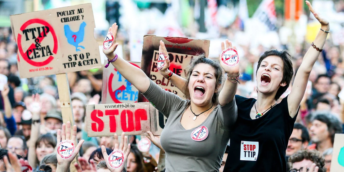 Die einstigen Stopp-TTIP-AktivistInnen sind in der deutschen Öffentlichkeit kaum noch sichtbar. Aber es gibt sie noch. Bündnisse wie „Stopp TTIP“ oder „TTIP unfairhandelbar“, an denen Hunderte Organisationen beteiligt waren und die den Protest zu einem Massenphänomen gemacht haben, gibt es zwar nicht mehr. Aber sie sind im Netzwerk Gerechter Welthandel aufgegangen, in dem rund 70 Organisationen wie Attac, der DGB, Campact oder die Naturfreunde Mitglied sind.