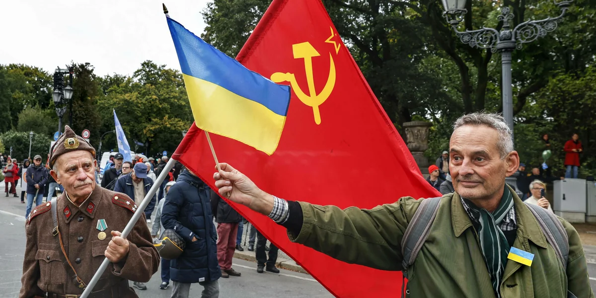 (Über die proukrainische Gegendemo) „Wie kann man denn so hasserfüllt sein?“ – „Aber die sind ja auch für Frieden.“