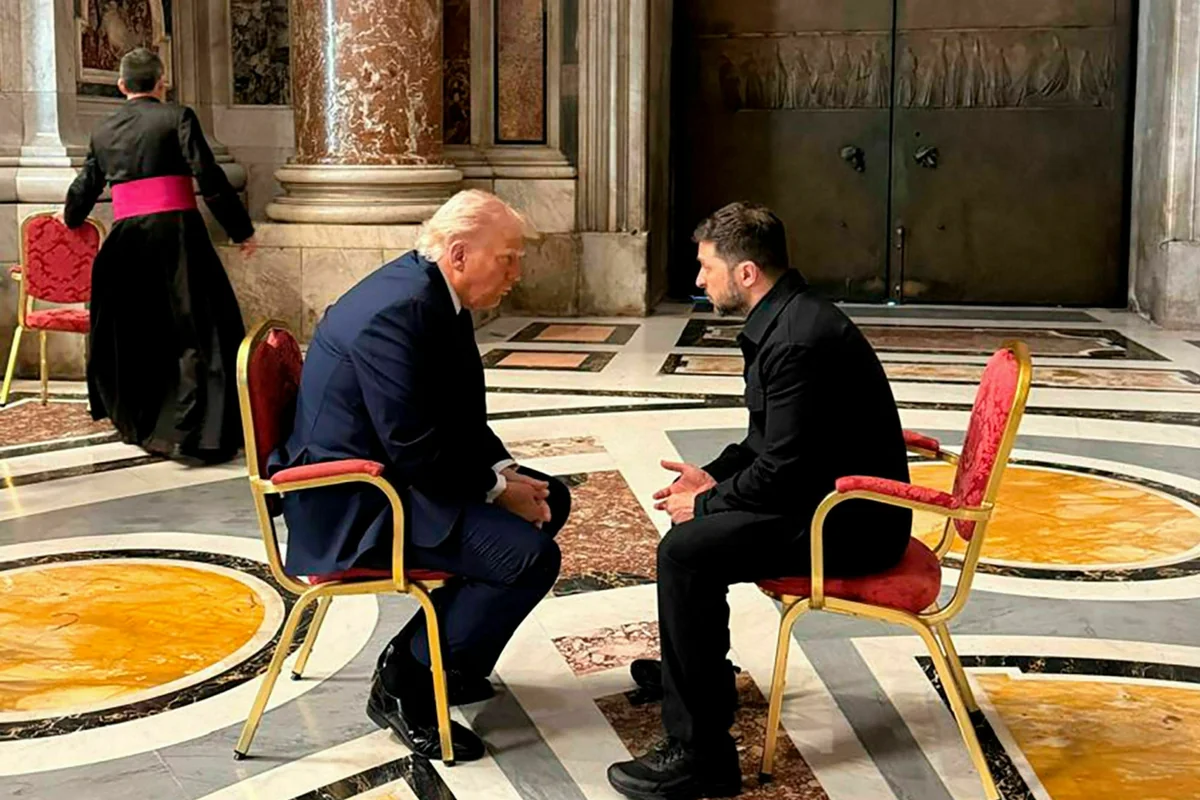 Das erste Treffen zwischen dem ukrainischen Präsidenten Wolodymyr Selenskyj und seinem US-Amtskollegen Donald Trump seit dem Eklat im Weißen Haus vor fast genau zwei Monaten hat Hoffnungen auf einen Neuanfang in der Suche nach einem gerechten Frieden für die Ukraine geweckt. Kurz vor der Trauerfeier für den verstorbenen Papst Franziskus am Samstag in Rom setzten sich die beiden Präsidenten zu einem Gespräch im Petersdom zusammen – auf Augenhöhe, auf schlichten Stühlen, ohne Zuhörer. Nach dem 15-minütigen Gespräch gingen sie nacheinander hinaus und nahmen in der ersten Reihe zur Trauerfeier Platz. Selenskyj erhielt Beifall aus der Menschenmenge, der US-Präsident nicht.