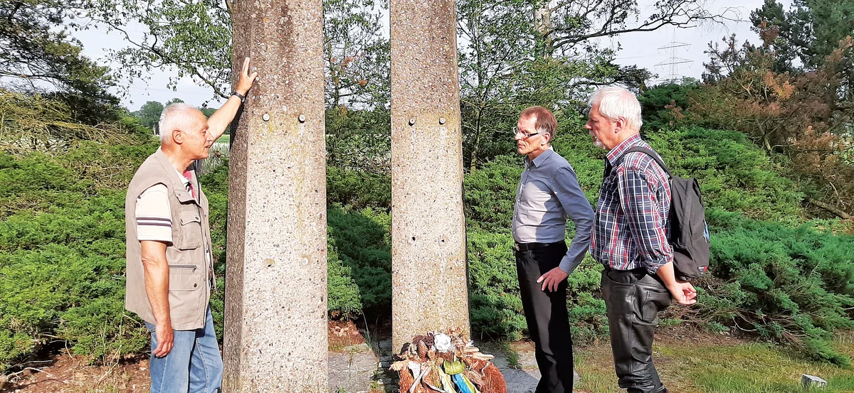 Volker Issmer, Historiker aus Osnabrück, der erstmals Mitte der 1990er-Jahre im Zuge seiner Forschungen zum Gestapo-Arbeitserziehungslager „Augustaschacht“ bei Osnabrück auf „Meyerhöfen“ gestoßen war, steht vor den nackten Stelen: „Unhaltbar“, sagt er. Michael Gander, Leiter des Osnabrücker Gedenkstättenensembles „Augustaschacht“ und „Gestapokeller“, nickt: „Fortschreitender Verfall, fortschreitende Schändung – zunächst einmal muss hier ein Zustand der Würde geschaffen werden.“