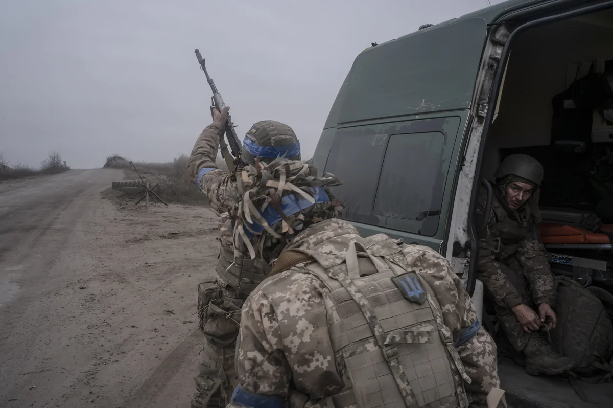 Zermürbt von fünf Tagen Hölle an vorderster Frontlinie betrachten Dilaver und Serhij schweigend die blutverschmierten Leichname ihrer Kampfgefährten. Die Atmosphäre ist bedrückt, ihre Gesichter sind ernst. Militärmediziner legen die beiden Körper in große Leichensäcke. Die Infanteristen entfernen die Magazine aus den Kalaschnikows. Sie werfen die Munition aus und zielen in den grauen Himmel, um sicherzugehen, dass die Waffen korrekt entladen wurden. „Legt die Helme und Schutzwesten ab und setzt euch in den Krankenwagen“, ordnet einer der Ärzte den Überlebenden an, die seiner Anweisung sogleich Folge leisten.