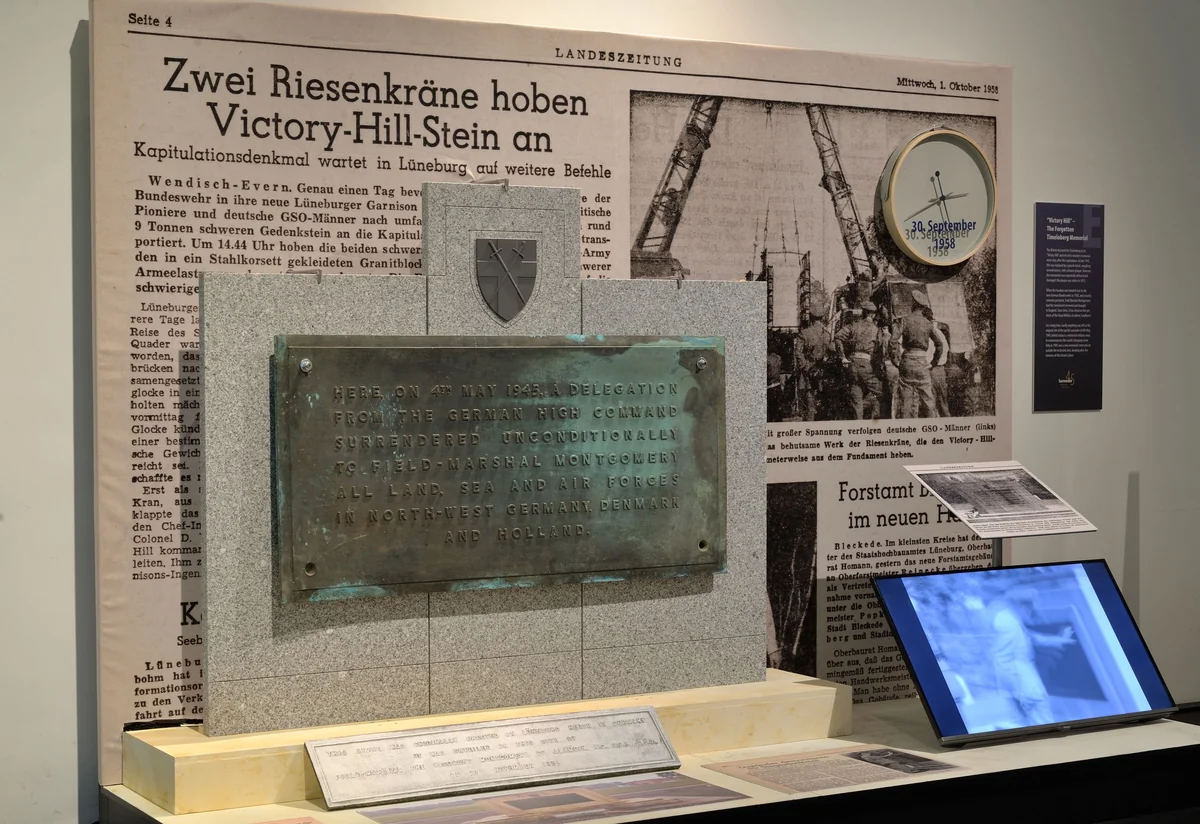 Eine unscheinbare Bronzetafel, 136 mal 68 Zentimeter groß, knapp 60 Kilogramm schwer, mit einer grünlichen Patina überzogen, ist seit Kurzem im Museum Lüneburg zu sehen. Sie erinnert an einen historischen Moment in der Heide: die Teilkapitulation der Deutschen Wehrmacht am 4. Mai 1945 auf dem Timeloberg bei Wendisch Evern, bekannt als „Surrender in the Luneburg Heath“.