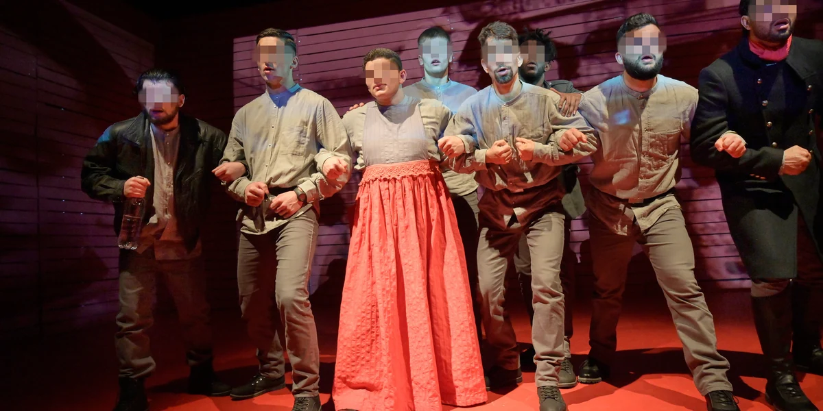 Die Auseinandersetzung mit dem Stück findet „tröpfchenweise“ statt, sagt Atanassow. Zuerst versuchen die Schauspieler die Wörter zu verstehen, die sie nicht kennen, dann die Szenen, dann die Konflikte. Manche waren noch nie in einem Theater. Mit dem Dramaturgen schreiben sie auch selbst, ein paar Textauszüge stehen im Programmheft: