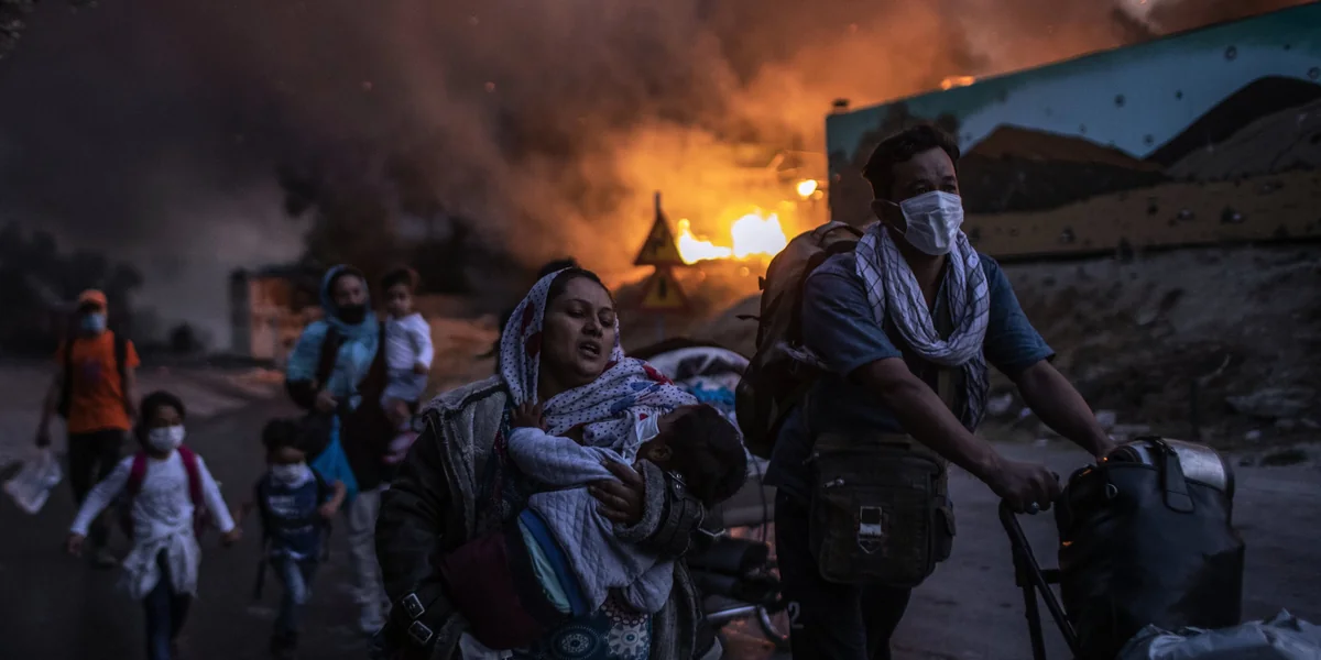 Eine Woche später brennt das Lager Moria dann bis auf die Grundfesten ab. 13.000 Menschen sind abermals auf der Flucht. Neun Tage lang müssen sie sich in den Feldern wegducken, um ihre Notdurft zu verrichten. Mütter waschen ihre Kinder an einem Wasserhahn an einer geschlossenen Tankstelle. Auf Demonstrationen der Vertriebenen antwortet die Polizei mit Tränengas. Humanitäre Helfer:innen werden nur willkürlich durchgelassen.