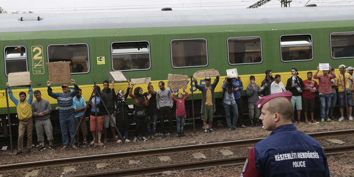 Die Polizei will die Flüchtlinge an der Weiterreise nach Westen hindern. Sie waren in Budapest in einen Zug Richtung Sopron an der österreichischen Grenze gestiegen, in der Hoffnung, von dort nach Österreich zu gelangen.