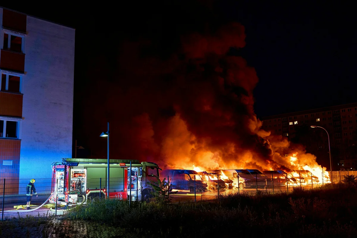 In der Nacht zu Dienstag waren auf einem Gelände im Berliner Ortsteil Britz 18 Amazon-Transporter ausgebrannt; nahezu zeitgleich brannten im Ortsteil Lichtenberg 17 Fahrzeuge der Telekom. Wie die Berliner Feuerwehr mitteilte, gingen die Notrufe gegen 3 Uhr nachts ein. Rund 100 Einsatzkräfte löschten die Brände. Verletzte gab es keine. Die Polizei geht von einer politischen Motivation aus, weswegen der Staatsschutz ermittelt.