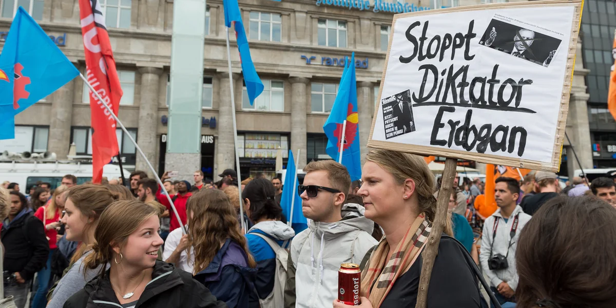 Das Bündnis „Erdowahn stoppen!“, dem Jugendorganisationen von SPD, Grünen, FDP und Linkspartei angehören, demonstrierte sowohl gegen den Abbau der Demokratie in der Türkei als auch gegen rassistische Proteste gegen den Präsidenten der Türkei. Um eine rechtsextreme Demonstration gegen die Unterstützer des türkischen Staatsoberhaupts hatte es im Vorfeld eine gerichtliche Auseinandersetzung gegeben: Die Kölner Polizei wollte lediglich eine Kundgebung an einem Ort erlauben. Die Gerichte sahen dies anders. Zu einer rechtsextremen Kundgebung kam es am Ende dann allerdings doch nicht, weil sich die Polizei mit den Organisatoren nicht auf keine geeignete Wegstrecke einigen konnte.