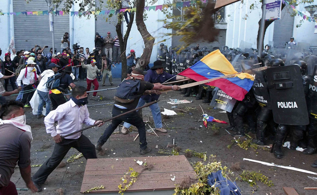 Auf der Panamericana, der Hauptverkehrsachse des Andenlandes, kam es südlich der Hauptstadt Quito zu Zwischenfällen mit der Polizei, als Innenminister José Serrano versuchte, den Abzug der Demonstranten zu erzwingen. Zwölf Polizisten wurden dabei durch Steinwürfe verletzt, wie das Innenministerium mitteilte.