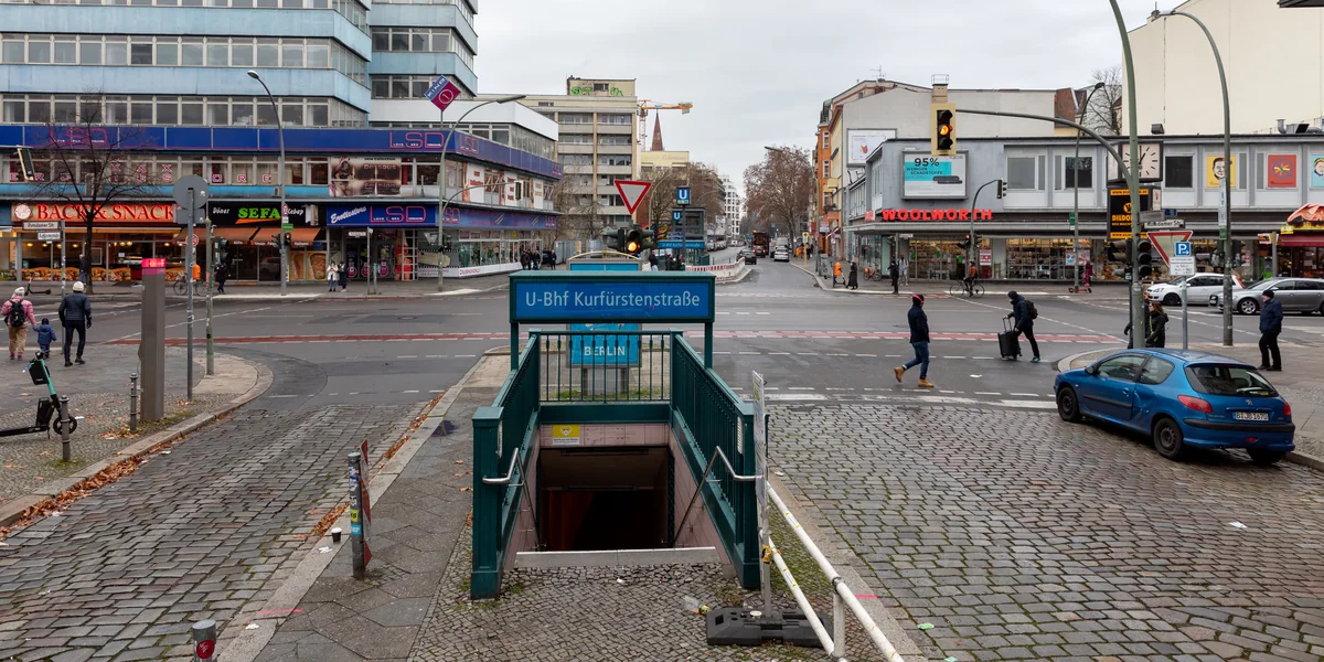 Noch sieht die Kreuzung so aus, wie seit Jahrzehnten bekannt: Auf Schöneberger Bezirksseite steht das klotzförmige Sexkaufhaus, das mit den drei pinkfarbenen Buchstaben LSD für „Love Sex and Dreams“ wirbt. Auf der gegenüberliegenden Straßenseite, die zu Mitte gehört, befindet sich in einem Flachbau eine Filiale von Woolworth.