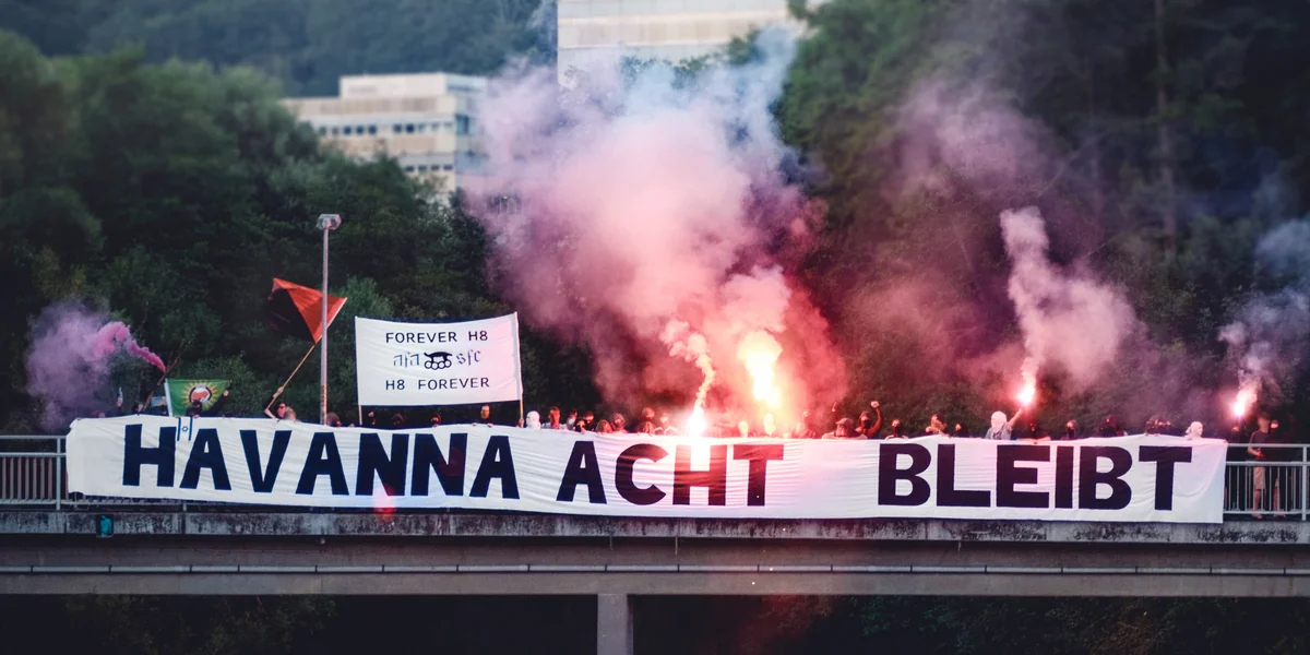Infos über und Unterstützung für das Havanna Acht unter https://savetheh8.noblogs.org/