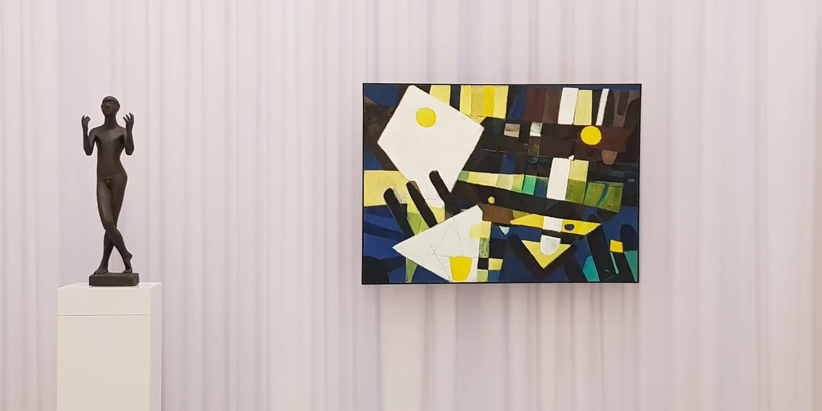 Ein nackter Jüngling aus Bronze steht auf einem weißen Sockel, die Hände flehend nach oben gerichtet. Neben der recht kleinen Statue hängt ein Ölbild in Blau-Gelb, ein Kraftfeld aus Dreiecken und Gittern. Wer dieser Tage die Neue Galerie in Kassel betritt, hat plötzlich das Gefühl, wie es damals tatsächlich ausgesehen haben könnte, 1955, auf der ersten documenta.